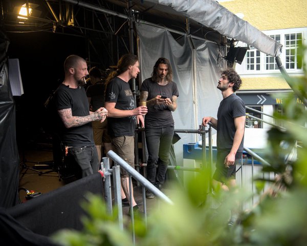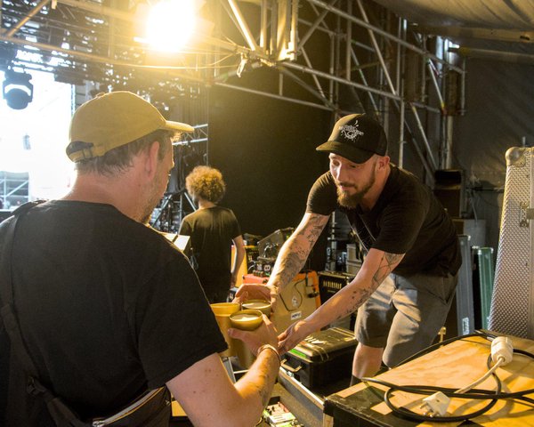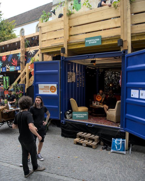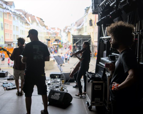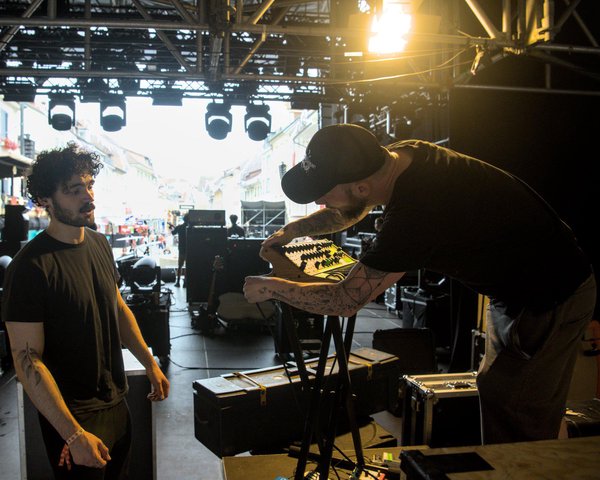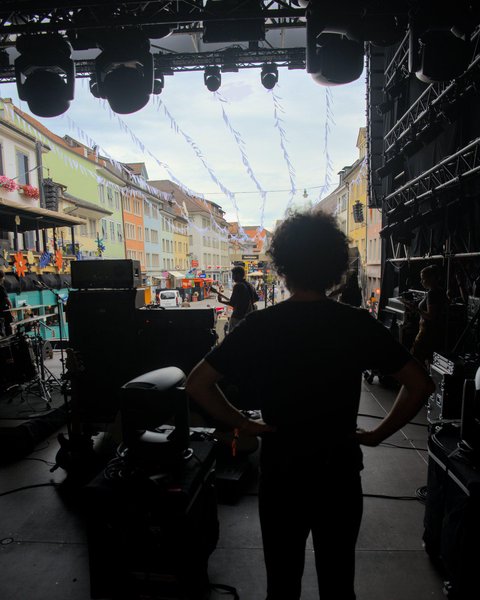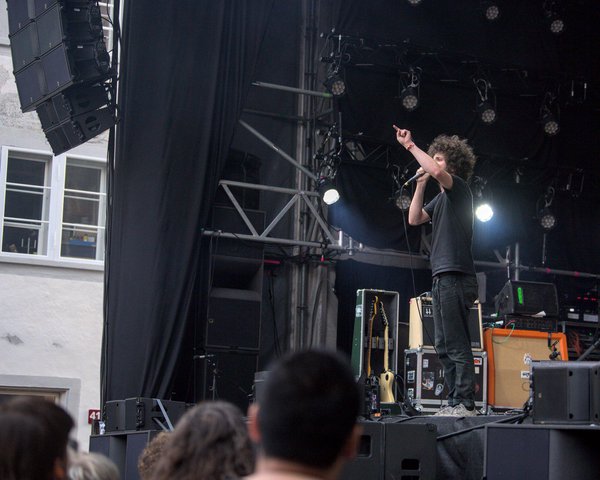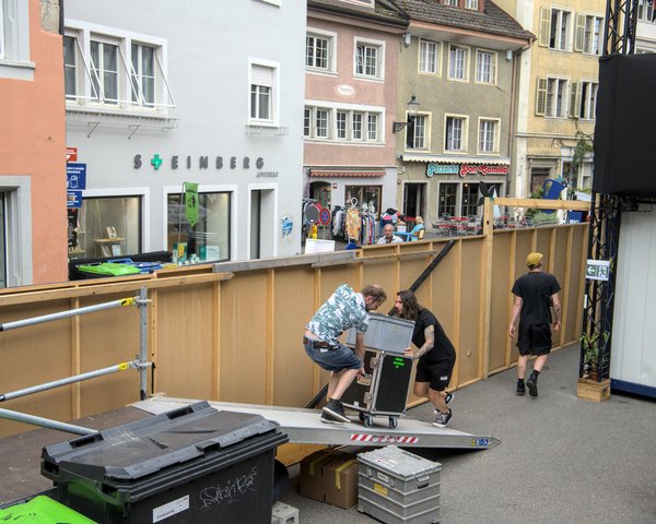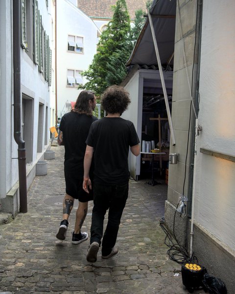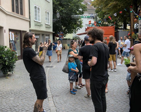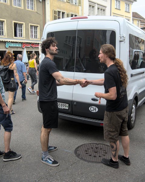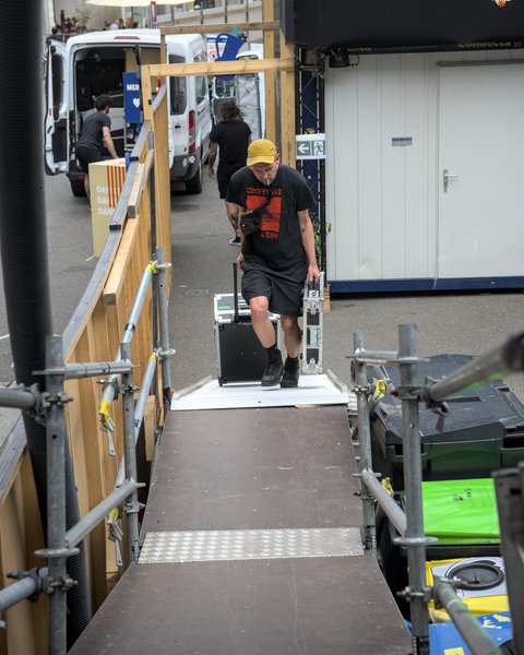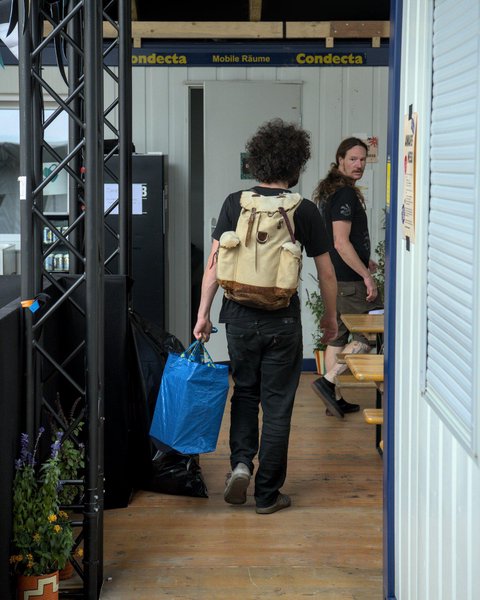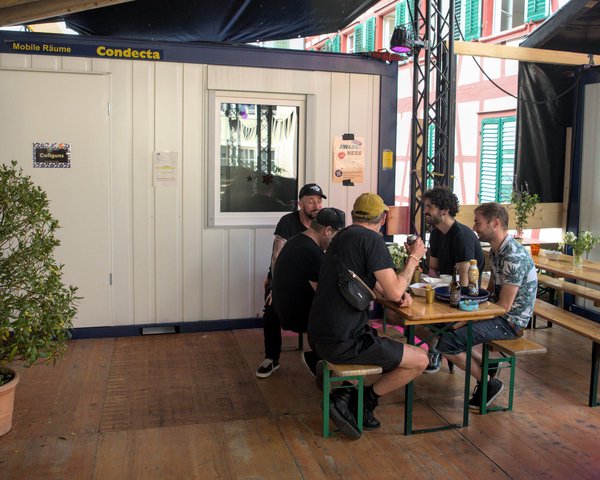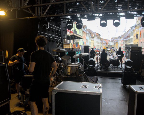 Während die Vorband ‘Soldat Hans’ ihren Auftritt hat steht für Jona und Louis ein Interview-Termin bei Radio Stadtfilter an. Diese haben ein kleines Studio in einem Container auf dem Geländer und machen Kurz-Porträts und Interviews mit den Bands. Zudem gibt es im Backstage Nachtessen für die Band und -Begleitenden.