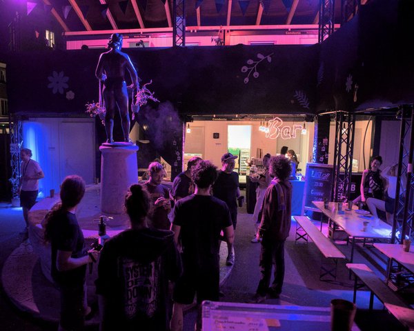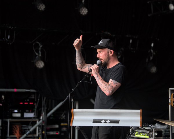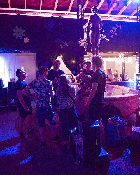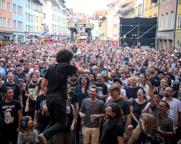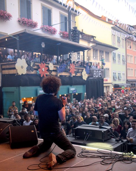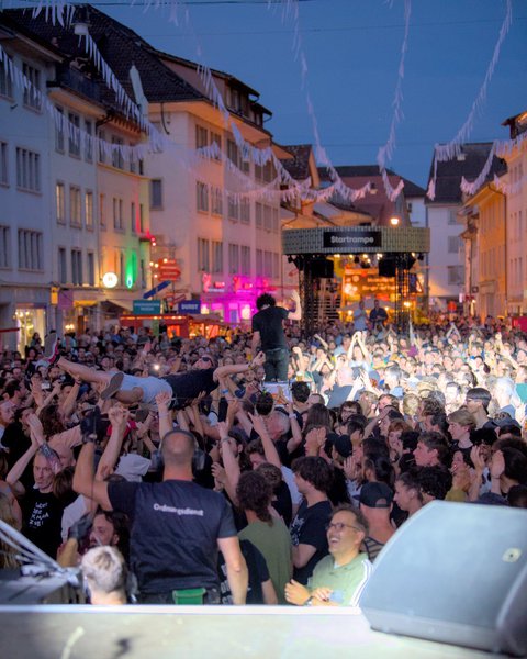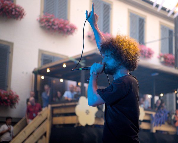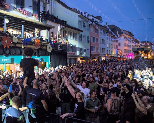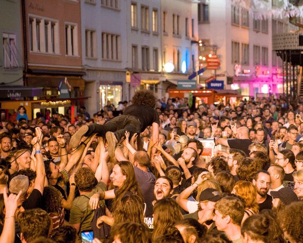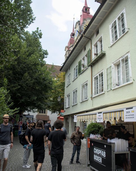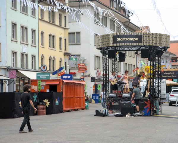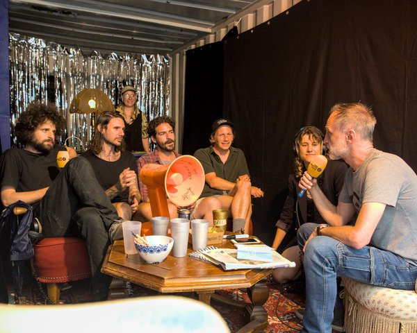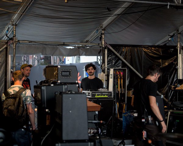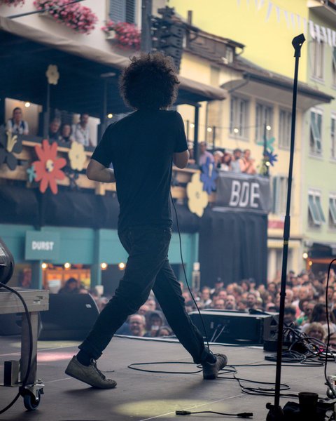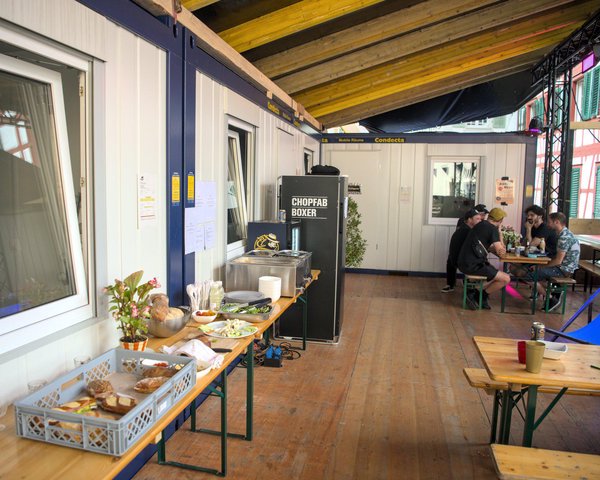 Während die Vorband ‘Soldat Hans’ ihren Auftritt hat steht für Jona und Louis ein Interview-Termin bei Radio Stadtfilter an. Diese haben ein kleines Studio in einem Container auf dem Geländer und machen Kurz-Porträts und Interviews mit den Bands. Zudem gibt es im Backstage Nachtessen für die Band und -Begleitenden.