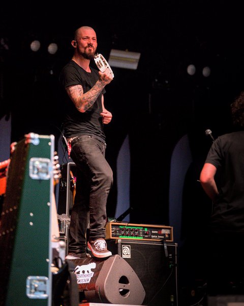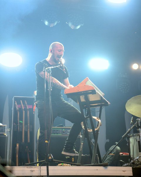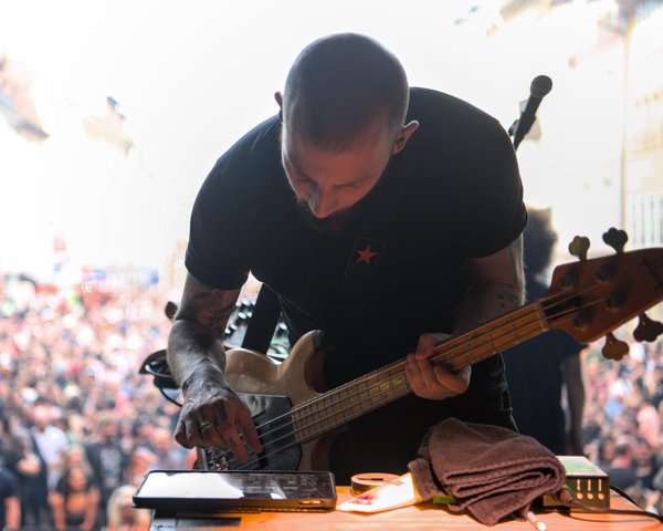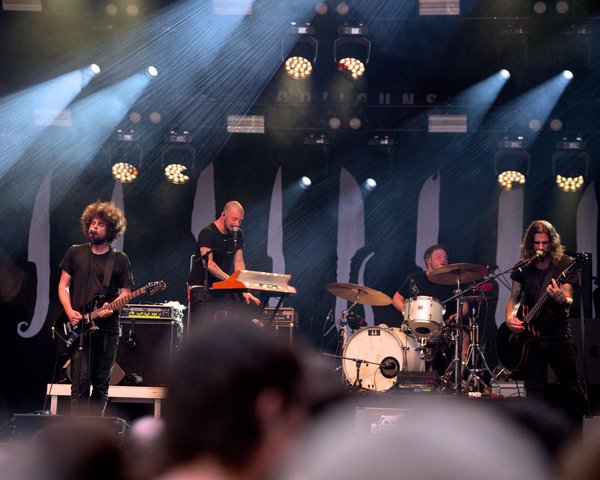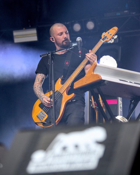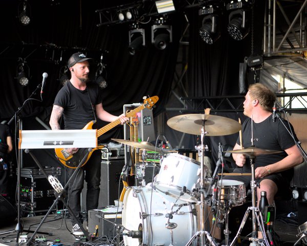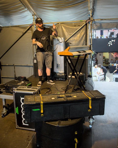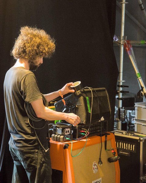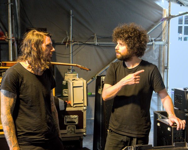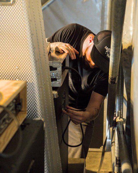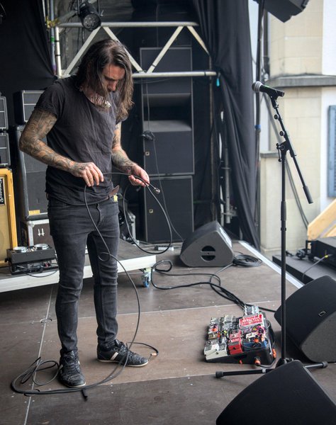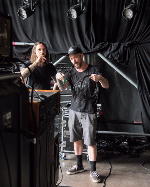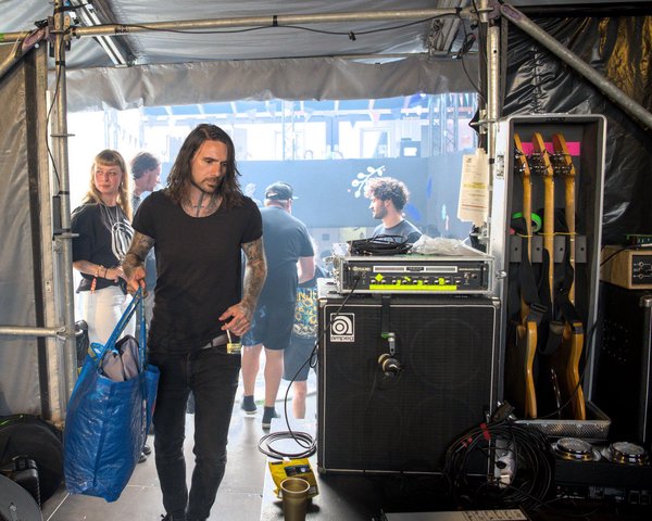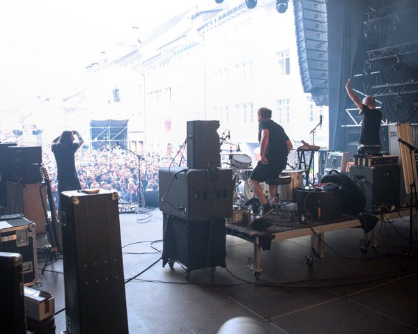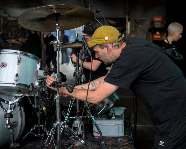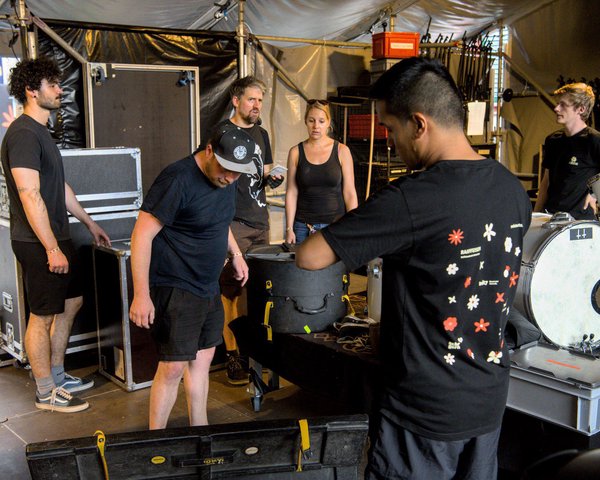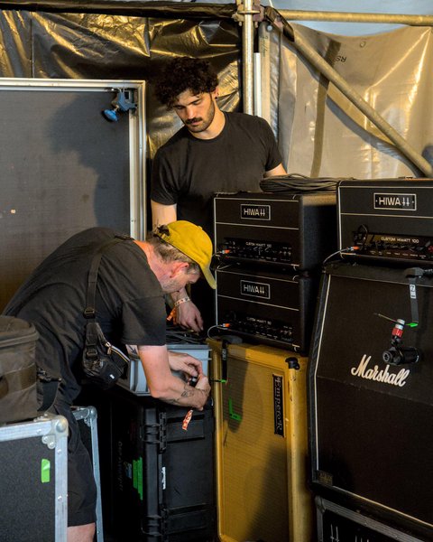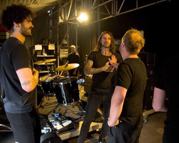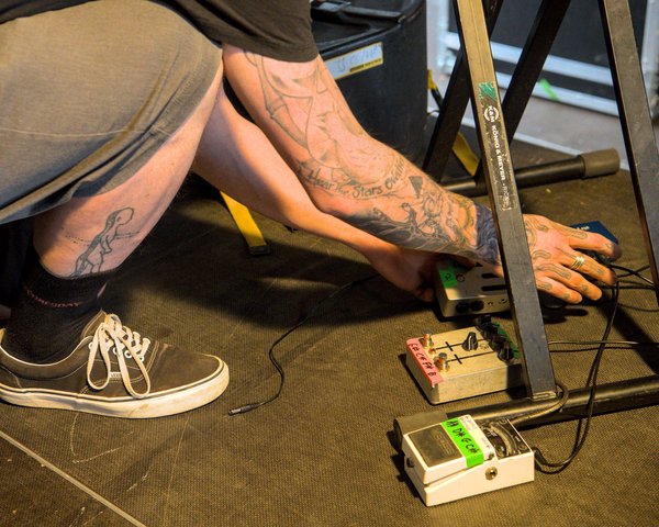 Am späteren Nachmittag ist die Band angereist, hat sich mit dem Band-Betreuer Chrigi getroffen und sogleich mit Ausladen begonnen. Daraufhin sind die Instrumente im hinteren Bereich der Bühne aufgebaut worden, während im vorderen Teil die Vorband mit dem Soundcheck beschäftigt war.
