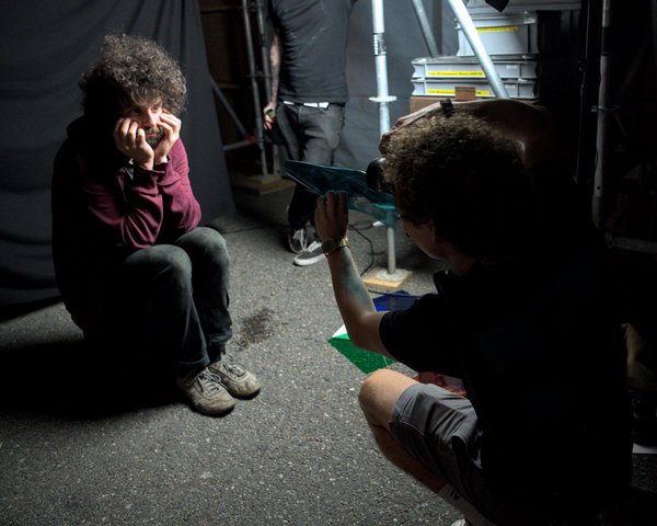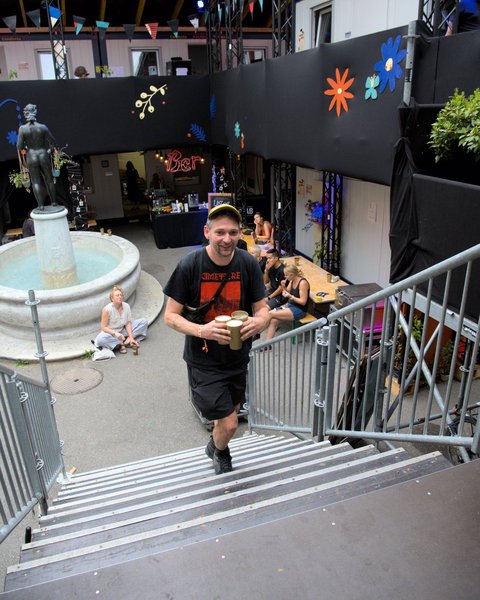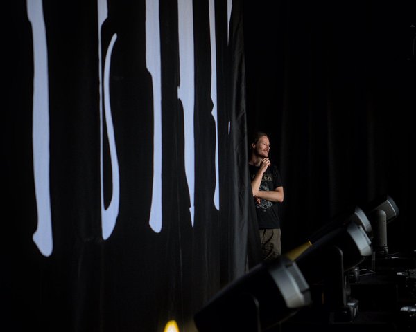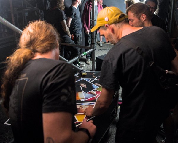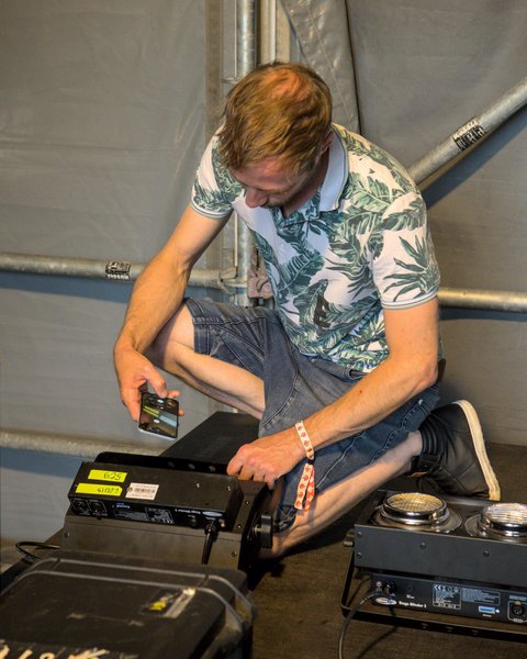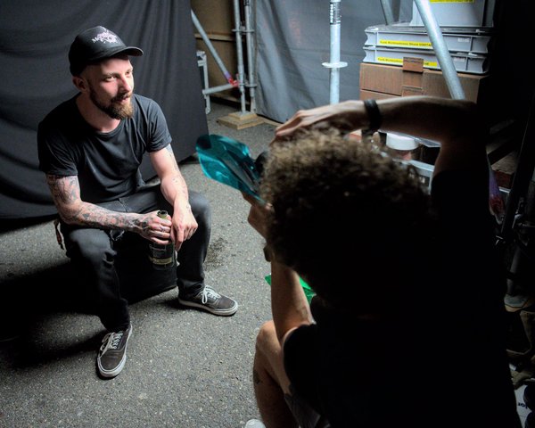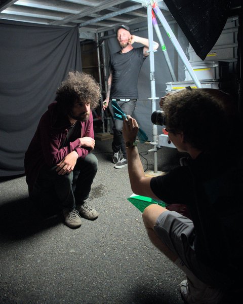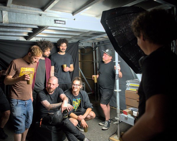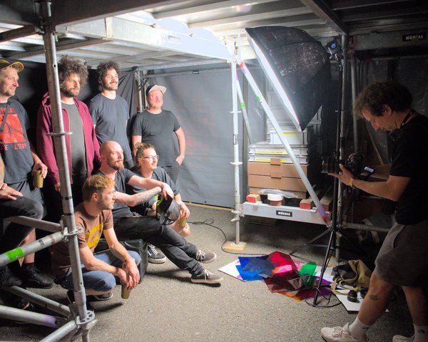 Der grossartige Andrin hat unter der Bühne ein Mini-Studio eingerichtet und macht Band- und Porträt-Fotos.