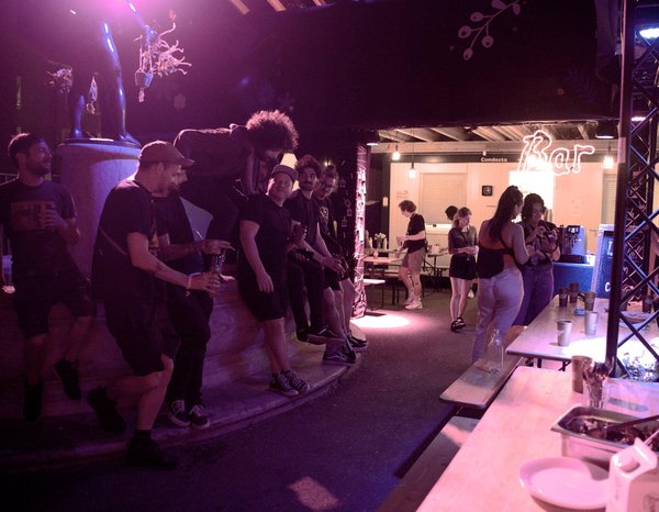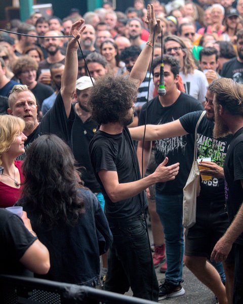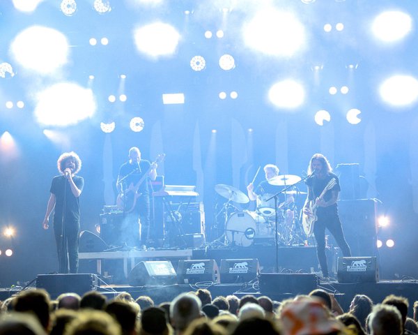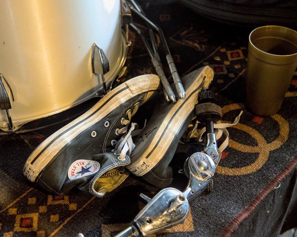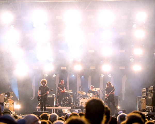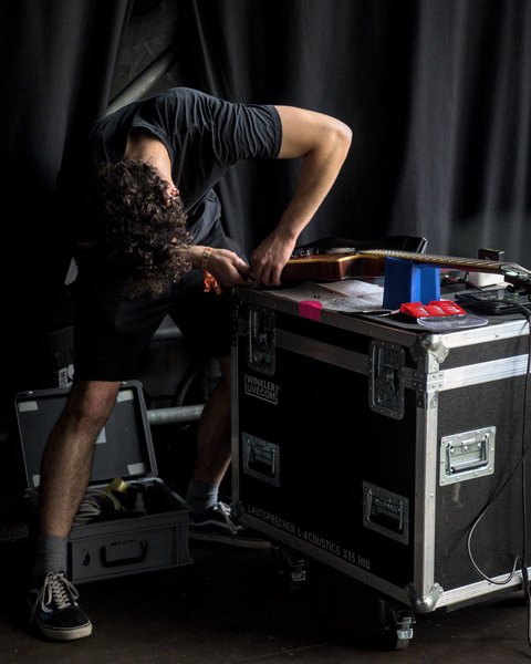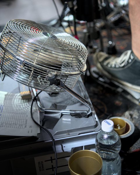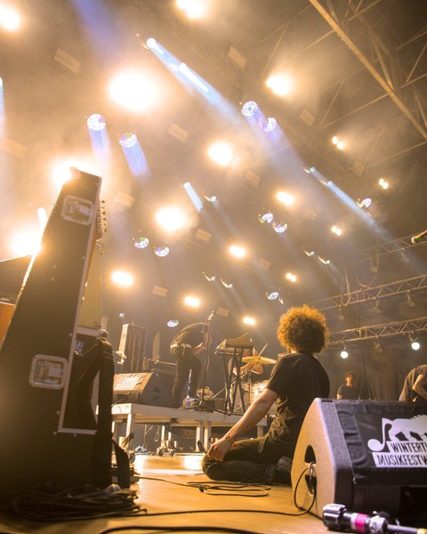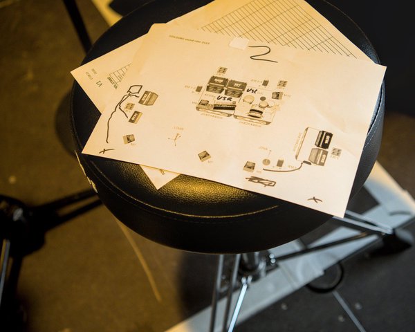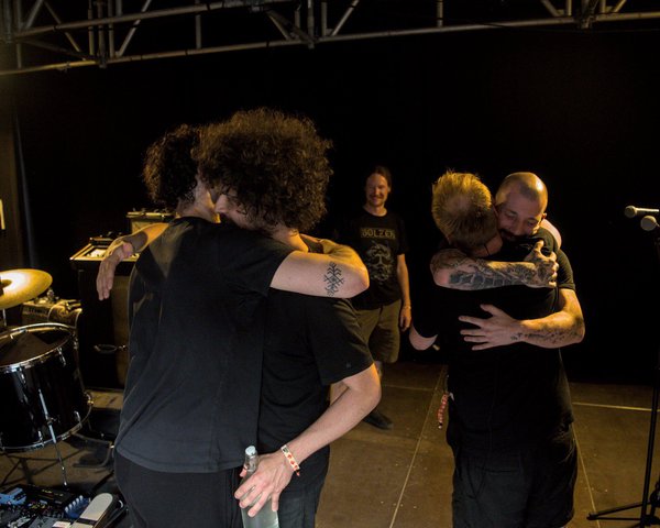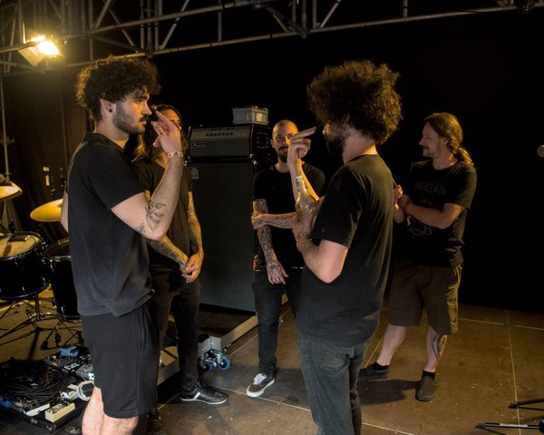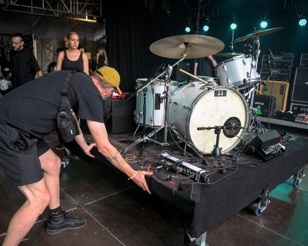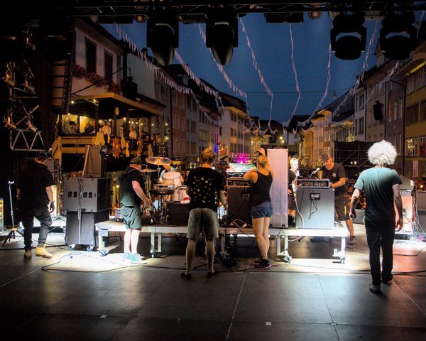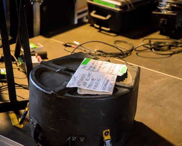 Gleich nachdem die Vorband ihren Auftritt beendet hat, wird die Bühne umgebaut und die Instrumente definitiv platziert. In dieser Zeit spielt auf der Startrampe in der Mitte des Publikums eine Nachwuchs-Band für 15 min. Sobald diese ihren Auftritt beendet hat, beginnt der Soundcheck.