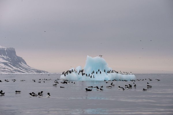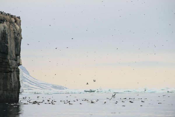 Der Alkefjellet (Vogelfelsen) ist eine Felswand, an der ca. 90'000 Brutpaare der Dickschnabellumme brüten. Es herrscht ein stetes kommen und gehen, Kämpfe um Brutstellen und -Partner.