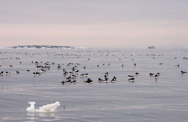 Nebst der Dickschnabellumme sind folgende Vögel oftmals auf dem Wasser oder in der Nähe von Eis zu beobachten: Eismöwe, Dreizehenmöwe, Elfenbeinmöwe, Gryllteiste, Eissturmvogel, Schmarotzer-Raubmöwe.